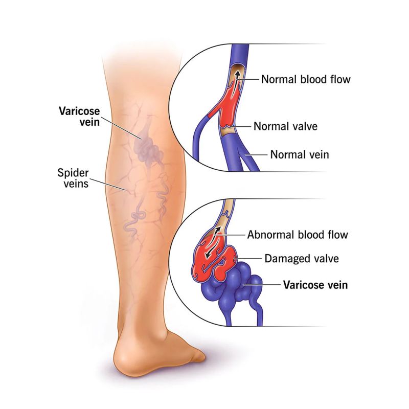Varicose Veins occur when the blood flow stops and valves in the veins stop functioning. It restricts the flow of the deoxygenated blood back to the heart. Varicose veins sometimes lead to more serious issues.